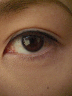劃上後的樣子…看得出來我的手有點抖~~ 不過它的筆尖很細,可以劃出一條很細的眼線…我覺得這個產品用來劃內眼線的效果會很好!到目前為止,我還沒體驗到它會葷的情況…不過有點難卸就是了~~售價:美金$3.99元