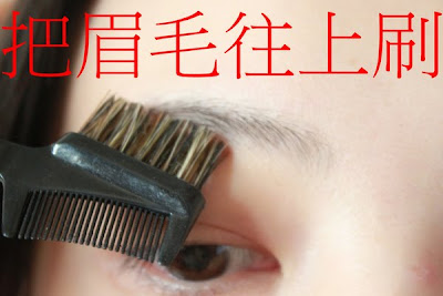 4、用螺旋刷往上梳,看到正確眉型輪 廓後再修整成尖尾。