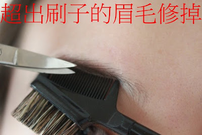 8、可以利用睫毛刷垂直往上刷至眉毛 上緣,超出刷頭部分的都是需要修剪的。