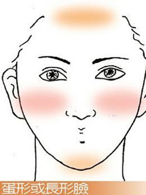 鵝蛋臉 扇形腮紅 太陽穴、笑肌、耳朵下方構成扇形,從頰側往兩頰中央上色,達到修飾臉形的目的。