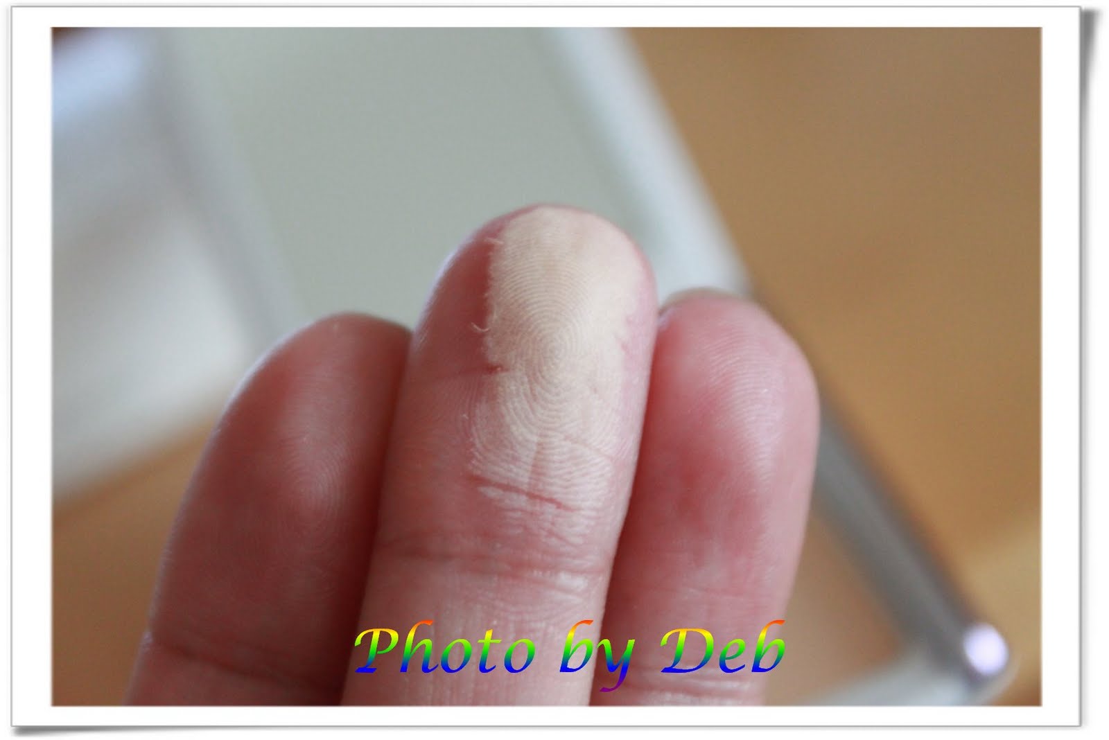 手指輕滑過,粉很輕易的就沾上來囉!
