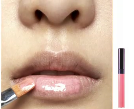以粉色唇膏打底