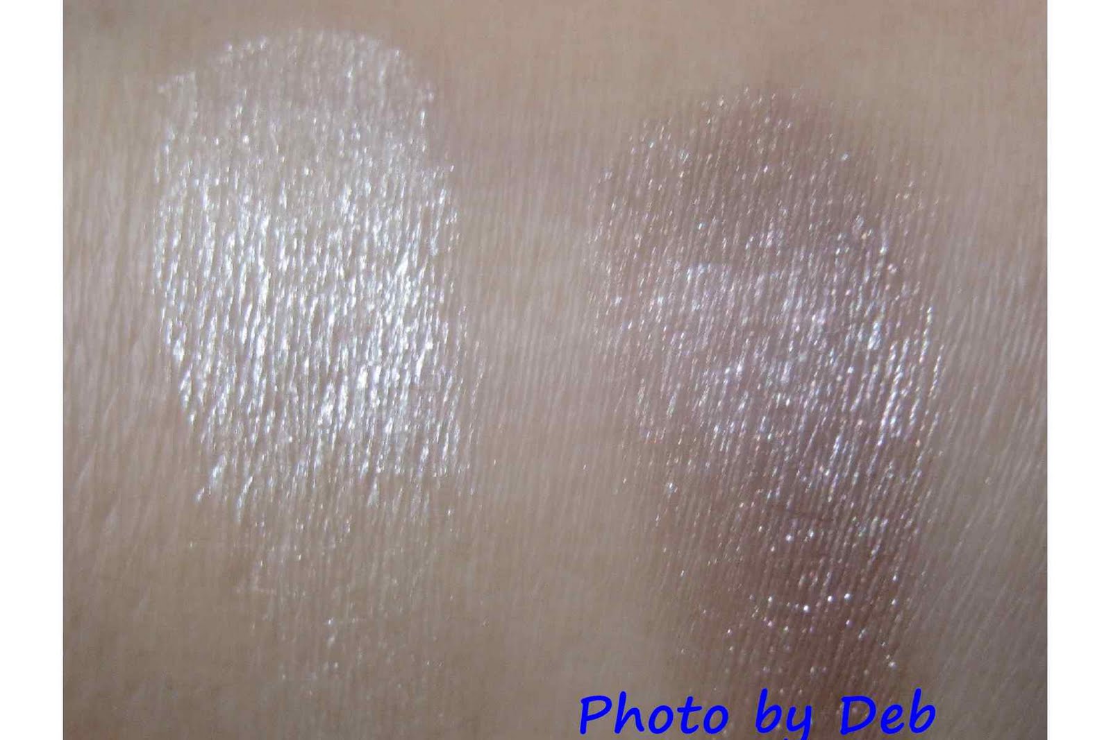 左邊的亮白色也很美麗,雖然說光澤感蠻高的,可是化在眼皮上又不會顯得誇張過份