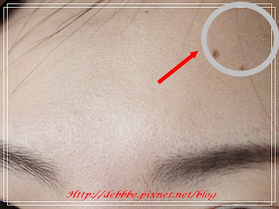 個人覺得它的保濕的效果沒有很明顯,有 點屑屑的產生(圖中箭頭所指處)