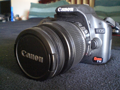 昨天T先生提早為我慶祝生日,過生日最興奮的就是有禮物可以拆~~ 在拆禮物之前心中嘀咕:什麼東東這麼大一盒啊? 重量還蠻重的耶!因為心中的好奇,我拆禮物的速度更快了…終於,一打開有許多小東西在盒中,最先看出來的是一個背包…嗯…心中念著:幹嘛給我一個背包啊?我又不是要去校外教學什麼的…再繼續翻,又有一堆小東西,每個都用盒子裝著,其中有一盒比較大的我就先拿了出來,一看!居然是一個專業單眼相機!!天啊!我夢寐以久的單眼相機~~我當然以更快的速度把它拆開來,結果T先生本來要告訴我:如果拆開後我就不能退還了~~結果,太遲了!我拆的速度比他講話的速度還快…哈哈…就是這一台,佳能新款相機,許多專業攝影師都推這一台,它不但有攝影還有錄影的功能。
