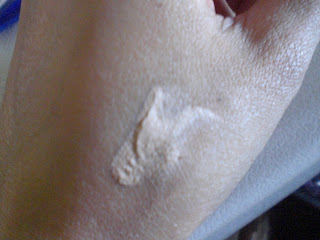 擠在手背上~~它的黏稠度比媚比琳的礦物質粉底還要黏一些,其實它也很好推開