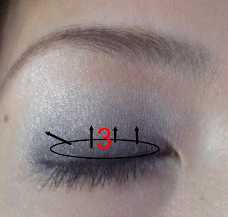 以3號(黑色)化眼摺,由下往上暈至眼窩1/2處