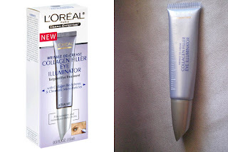 眼睛周圍的細紋往往是女人洩漏年齡的致命傷,所以好好照顧眼周的肌膚可不能懈怠!我前幾個月在Walgreens看到零零總總的眼霜,當然價格有高有低,我以前總是認為開架的保養品根本不可能和專櫃相比…可別這個想喔!現在的開架式保養品的品質都可以和專櫃的相比了,有一些甚至超過專櫃的水準了。尤其現在經濟不景氣,懂得如何花小錢獲得大美麗可是很重要的喔!我買了法國萊雅的抗皺膠原亮采眼霜(Wrinkle De-crease Collagen Filler Eye Illuminator)